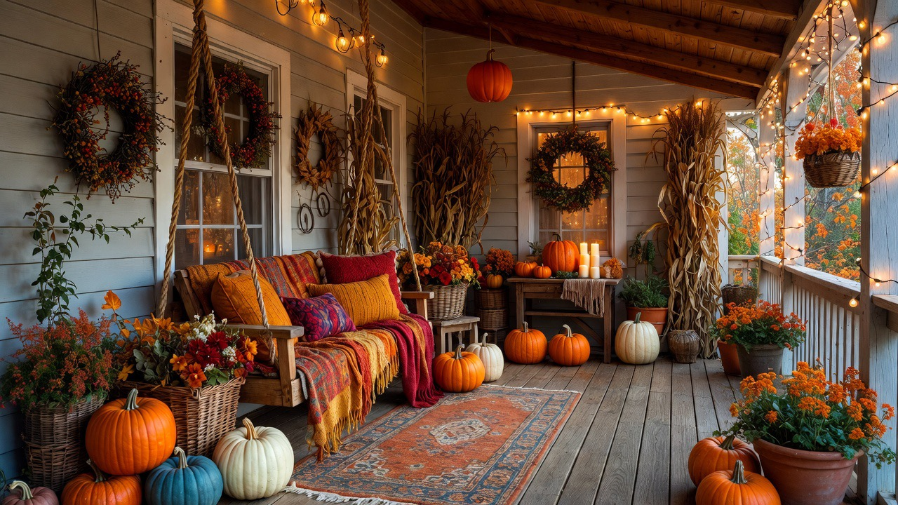 Transform your porch or yard with pumpkins, signs, lanterns, and harvest‑themed décor.